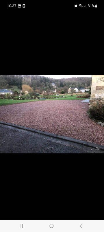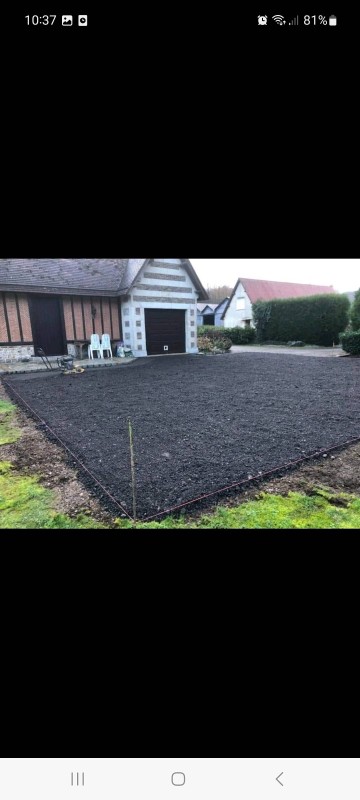 parking chez un particulier avec comptactage du fond de forme pour l'aménagement extérieur
