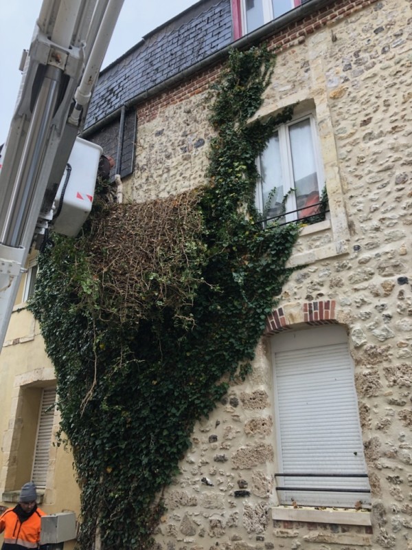 LA SARL RAPHAEL DORE a été contactée pour la taille de lierre en façade sur une maison afin de protéger les murs de celle-ci